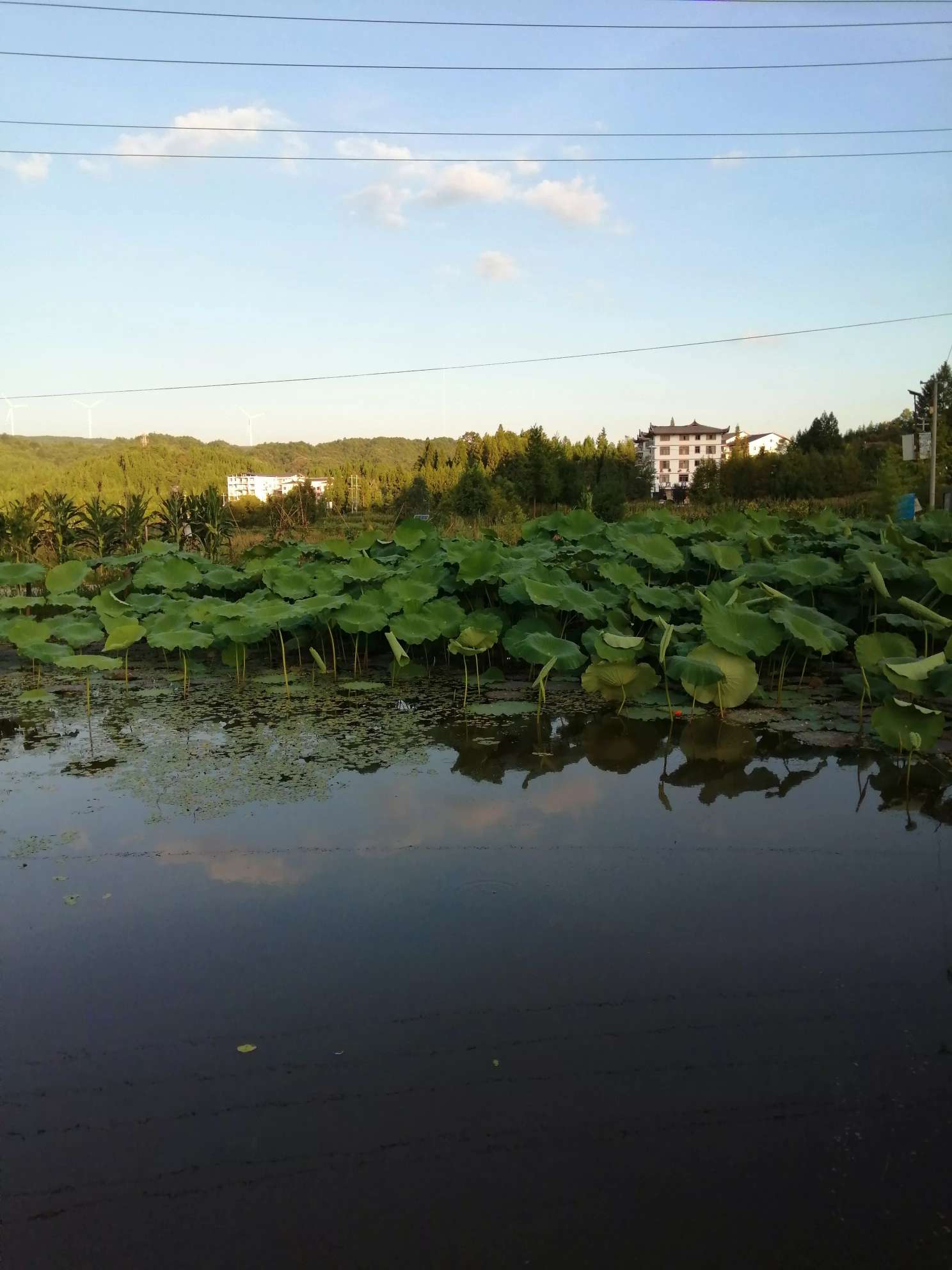 树竹葱笼屋舍雅,错落有致水墨画。荷田映天点点红,溪流通江处处洼。溪岸钓翁静期待,步道行人声喧哔。往昔穷山恶水处,赏心悦目可度假。